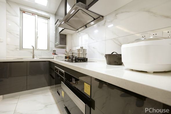 @鈴兒響叮當:沒有設計存放嵌入式消毒柜、烤箱、微波爐的高柜,致使后來一批小廚電放在臺面上,顯得太亂。